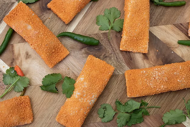 slices of bread and coated with breadcrumbs for